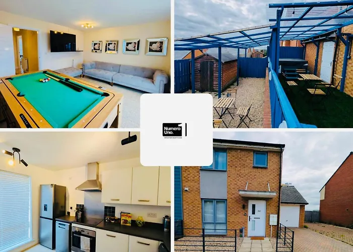 Located around 25 minutes' walk from Lancastrian Suite Event Venue, Numero Uno Luxe Retreat 3Br 3 Baths Hot Tub Wifi Contractor And Group Friendly Newcastle upon Tyne villa entices guests to relax in a Jacuzzi. Guests can enjoy ping pong and billiards at the accommodation, located 3.3 km from the Dunston Staiths.